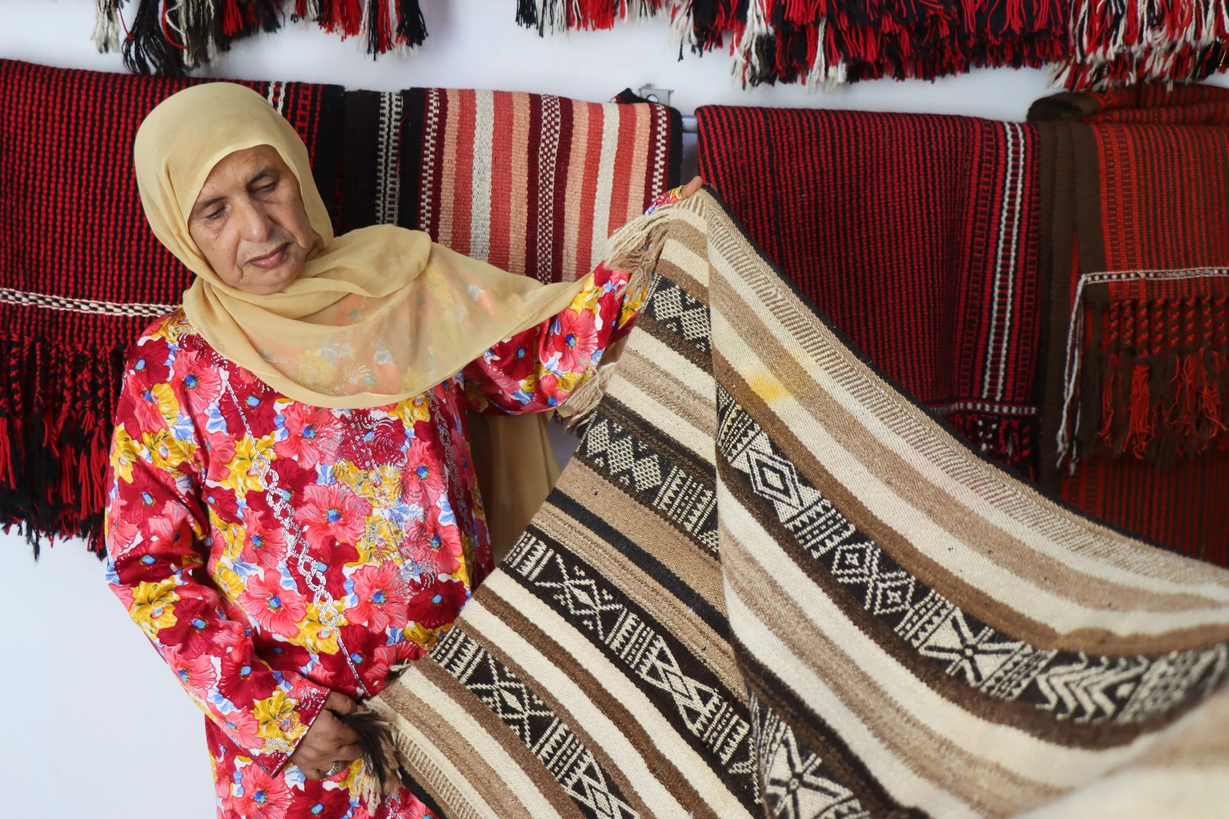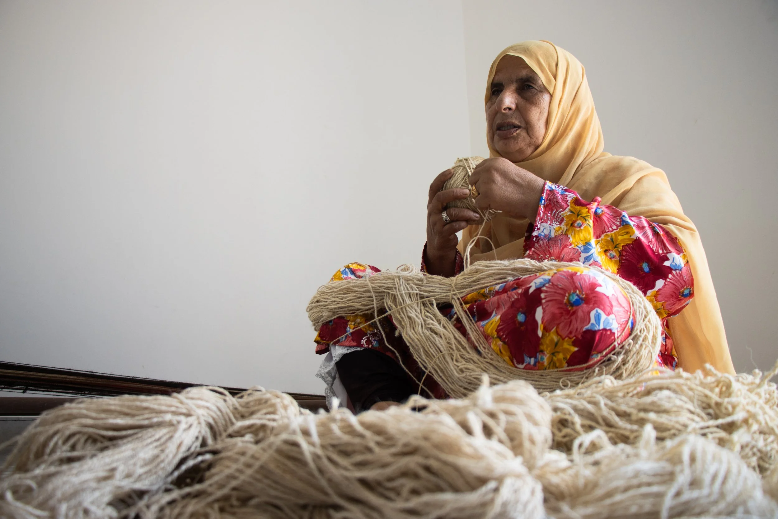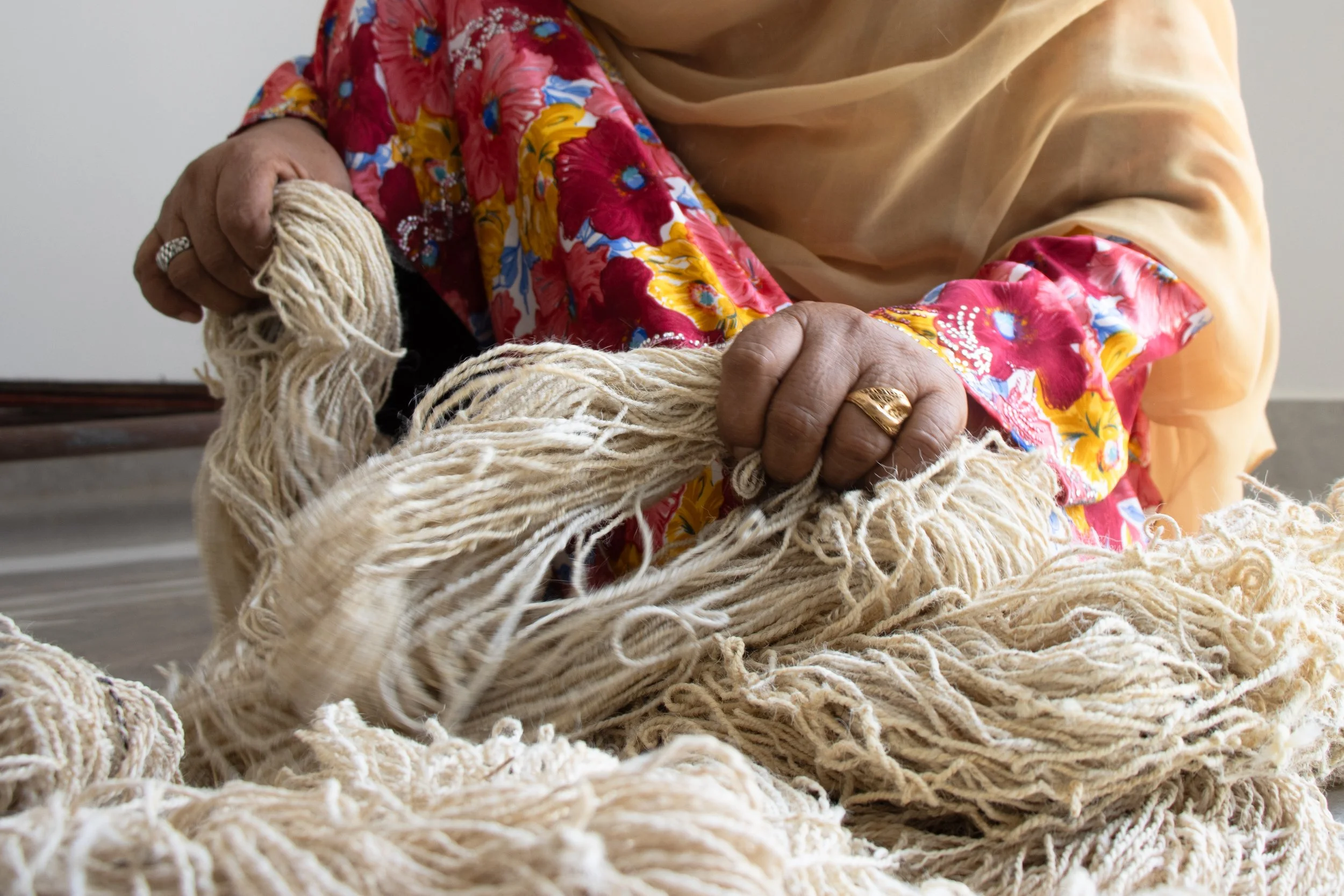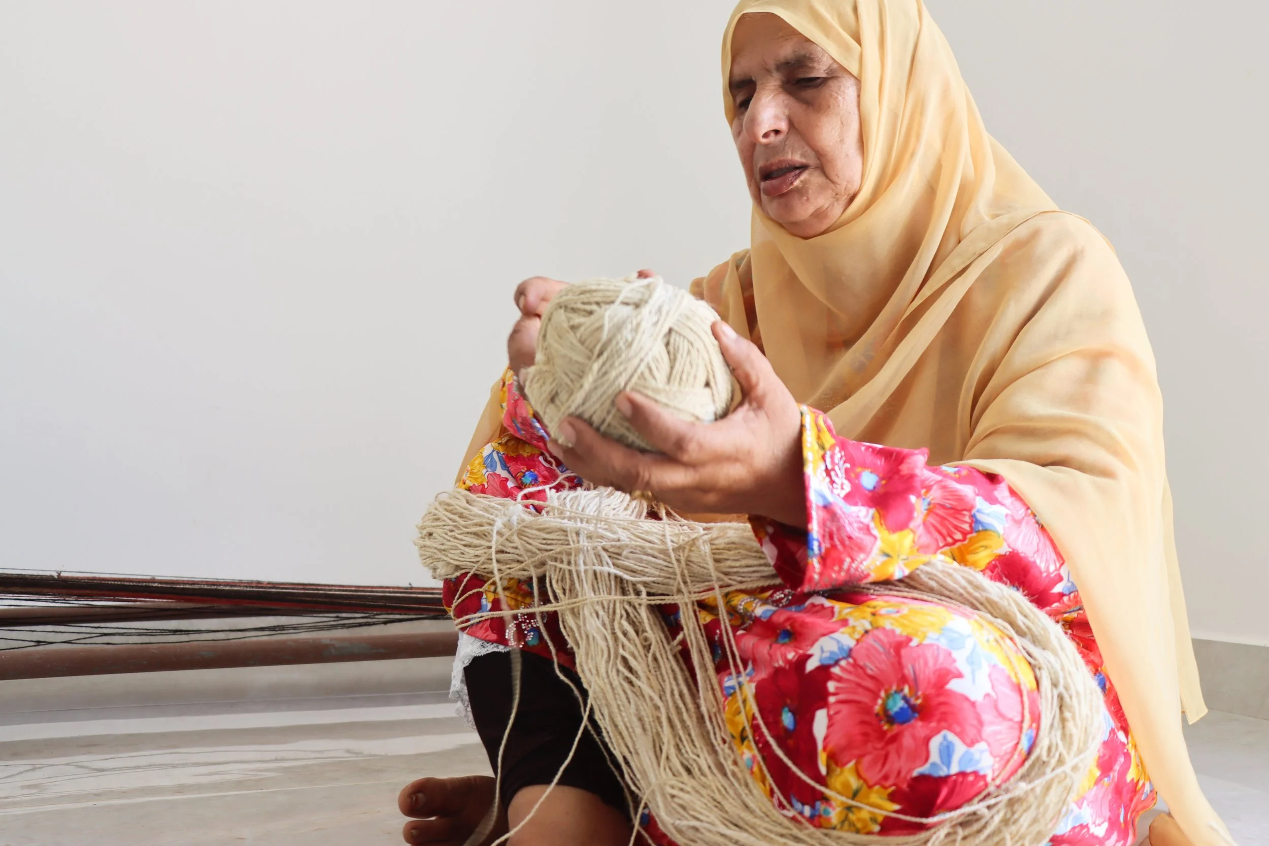 Such a joy to sit with Shaikha, who makes from wool thread, and from thread carpets.