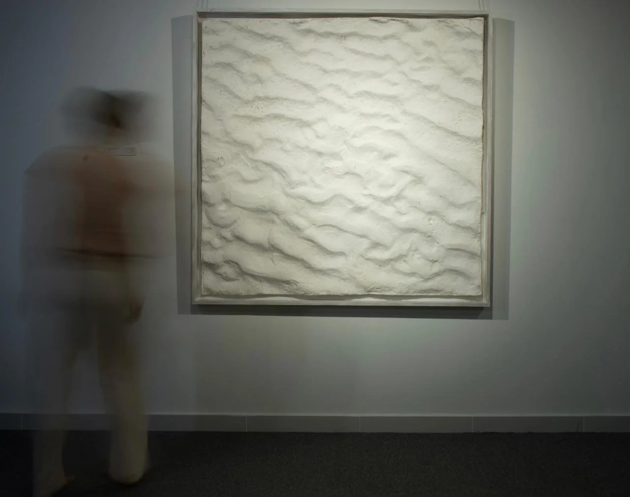 1.5 × 1 m , a 1 × 1 m piece, a 1.5 × 1.5 m work, and six smaller works (each 50 × 50 cm), each capturing a unique rhythm found in the sand.
